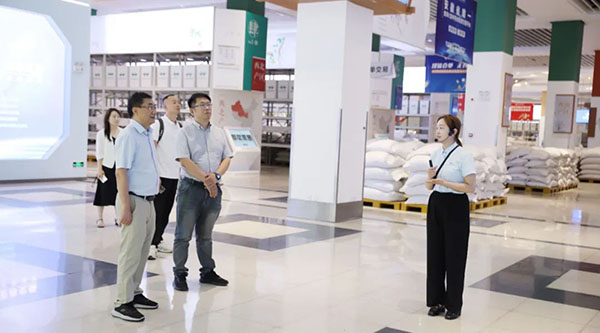 在參觀神農(nóng)倉時,工作人員詳細介紹交易中心創(chuàng)新打造的神農(nóng)倉,主要依據(jù)麥德龍倉儲式商超理念來實現(xiàn)市場升級換代,完成市場產(chǎn)地化,依托交易中心“N+50”全國資源布局體系,匯聚全國藥材主產(chǎn)地一手貨源??疾靾F一行駐足在智慧交易屏前,詳細了解神農(nóng)倉線上掛網(wǎng)、線下展示、遠程視頻實時看貨的交易模式,并查看了黃山產(chǎn)區(qū)交易藥材,對交易中心打造的線上線下相結(jié)合的中藥材市場流通體系給予高度認可。