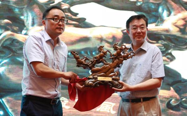 股份公司副總裁王衛(wèi)平代表公司向編委會(huì)致賀詞,并作為東道主回贈(zèng)中西醫(yī)結(jié)合心腦血管病雜志編委會(huì)《八駿雄風(fēng)》木雕禮品。